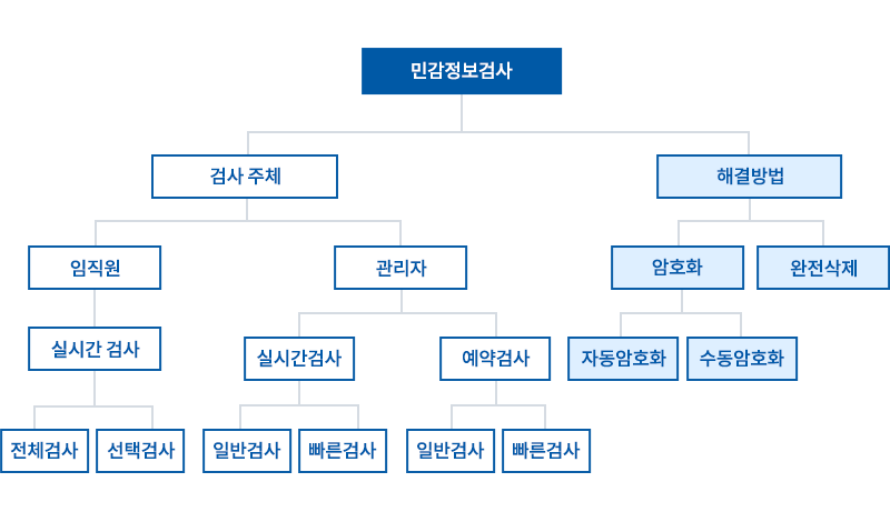 PC 검사를 통해 민감정보를 파악하고, 검출된 민감정보 중 필요한 정보는 암호화,