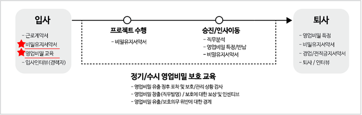 기술 보호에 대한 인력 관리의 시작이므로, 영업비밀에 대한 교육이 꼭 필요합니다.