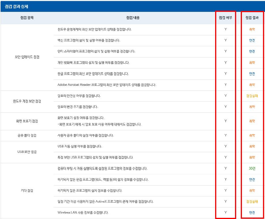 ③ 점검 결과 상세에서 항목별로 점검 여부를 확인할 수 있습니다.