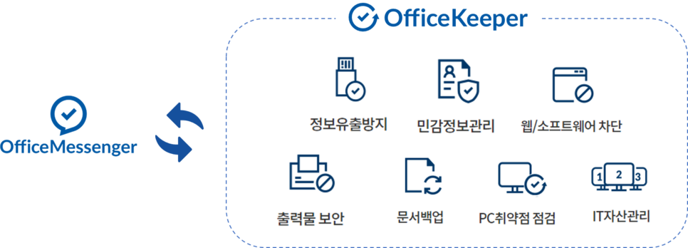 ① 오피스메신저는 오피스키퍼와의 연동으로 안전한 공유환경을 구축할 수 있습니다.