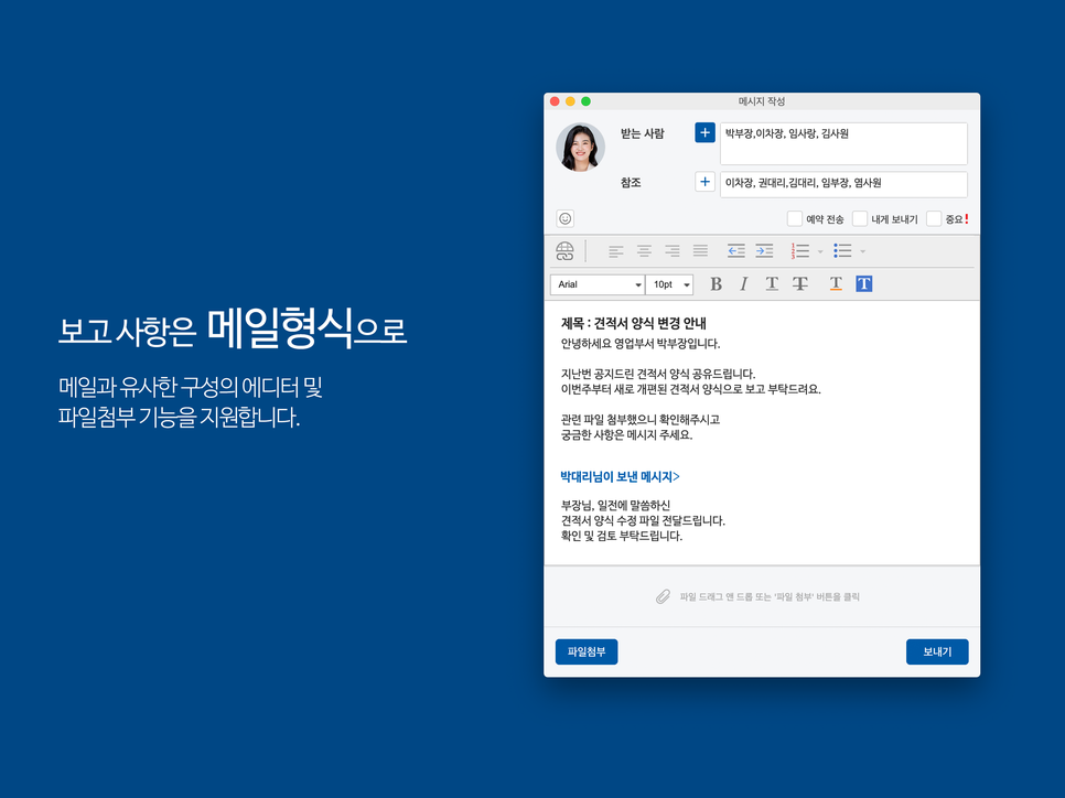 형식과 보안을 갖춘 기업용메신저, 오피스메신저입니다.