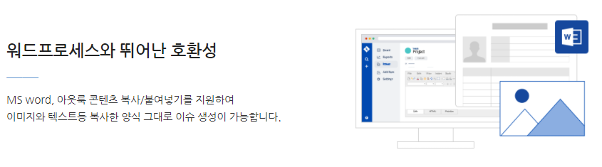 MS워드 수준의 직관적인 기능들은 누구나 쉽고 빠르게 Jira에서 콘텐츠를 자유롭게 제작/배치 할 수 있는 환경을 제공합니다.