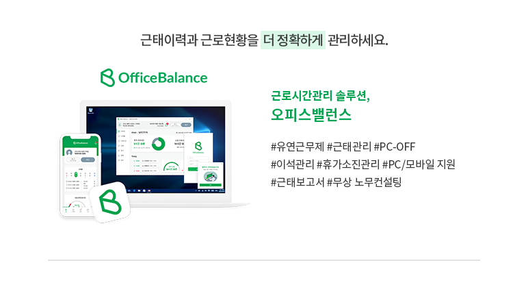 근태이력과 근로현황을 더 정확하게 관리하는 '주 52시간 근로시간관리 솔루션 오피스밸런스'