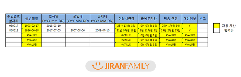 남성의 경우, 예시와 같이 군입대와 군제대를 작성하면 적용 연령이 나옵니다.