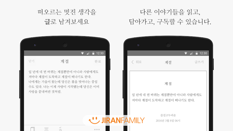또한 다른 사용자들은 글감에 대해 어떻게 썼는지 볼 수 있어요. 서로 쓴 글을 공유하고 또 맘에 드는 글의 사용자를 구독할 수도 있습니다. 평소 글쓰기에 관심이 있었다면 씀으로 글쓰기를 시작해보세요. 다양한 글을 접하고 한번 직접 써보는 것만으로 많은 생각을 할 수 있는 시간이 될 거예요.