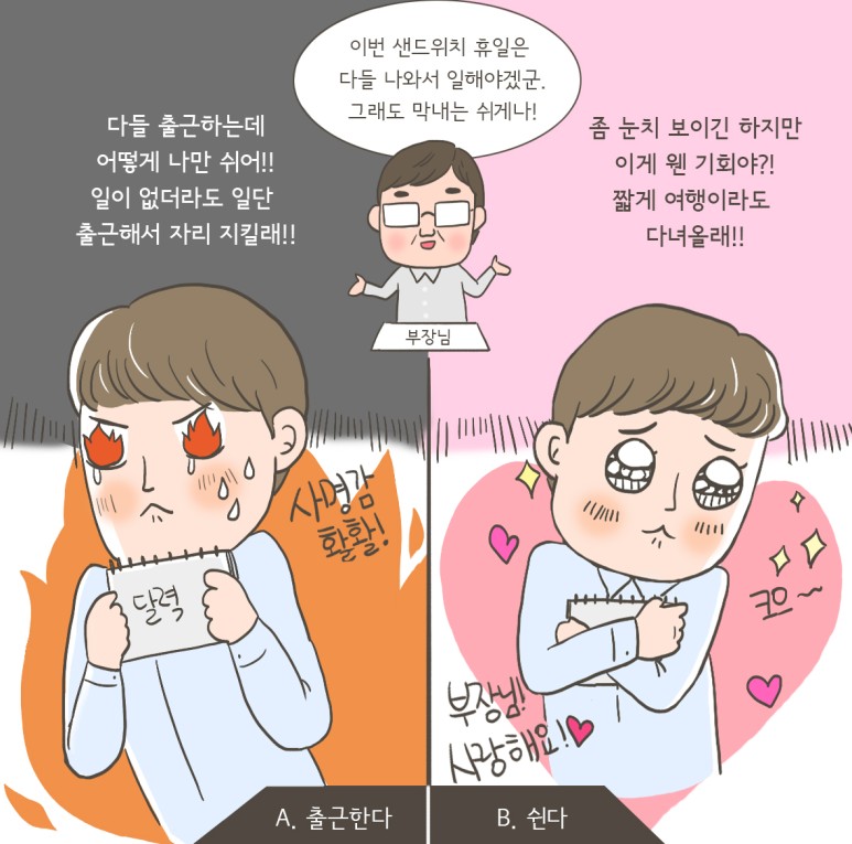 직장인 공감 샌드위치 휴일 휴가 갈 수 있다면? 화요일엔 화이툰! - 지란지교소프트 with 지란지교패밀리
