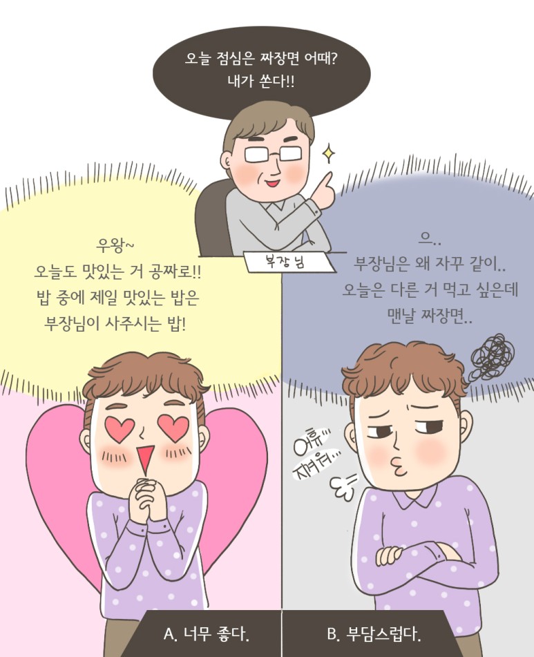 회사 점심 시간! 부장님이 사주시는 메뉴 or 내가 먹고 싶은 메뉴 [화이툰] - 지란지교소프트 with 지란지교패밀리