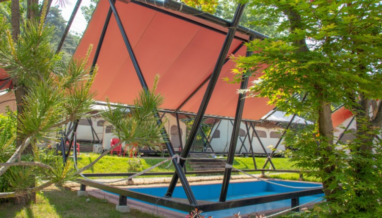 필요한 모든 글램핑용품과 개수대, 화장실, 샤워실을 비롯한 수영장과 바베큐장까지 마련되어 있어서 불편함을 걱정할 필요도 없겠네요.