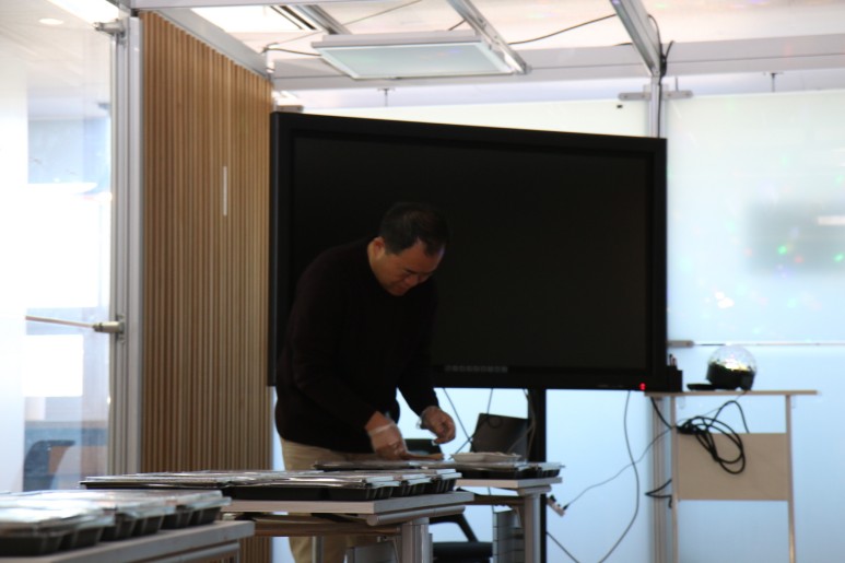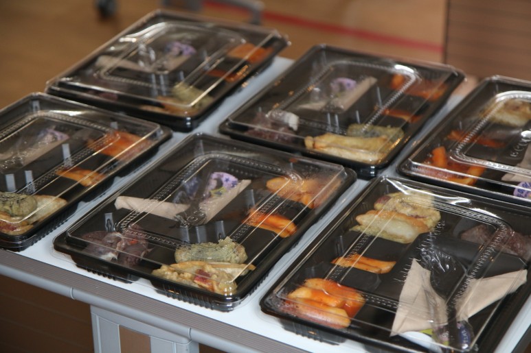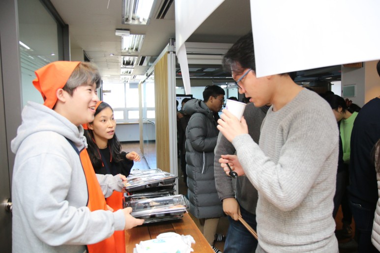 결국 도시락에 담아서 책상 위에 미리 세팅해 놓는 방법으로 의견이 모아졌습니다. (대신 업체가 도시락에 담느라 밤을 샜다는 소식이 -_-;)