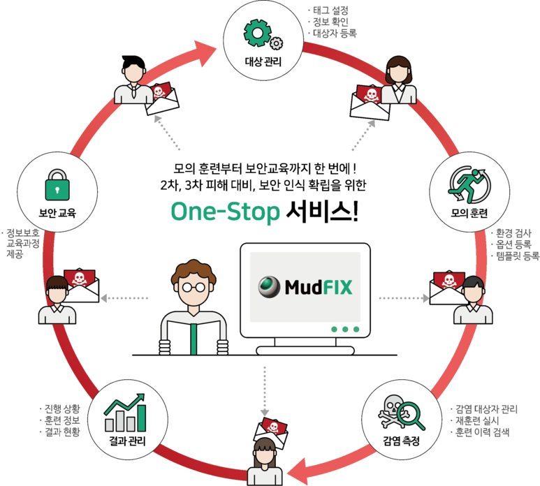이러한 법안을 준수하면서, 내부적으로 보안 인식을 확립하여 악성 이메일 해킹을 예방할 수 있는 훈련 솔루션인 MudFIX를 소개드리려 해요!