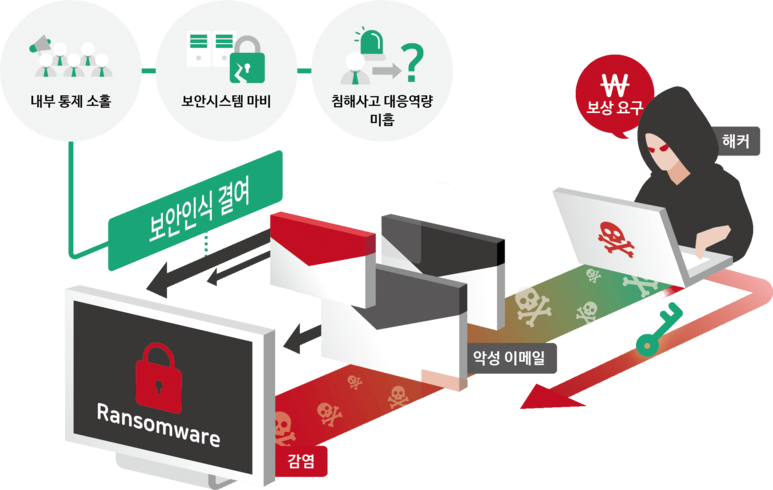 이런 랜섬웨어 피해를 입은 5개 기업 중 1개는 결국 대가를 지불하지만 현실적으로 데이터 복구에 실패하는 경우가 많다고 하네요. ㅠㅠ