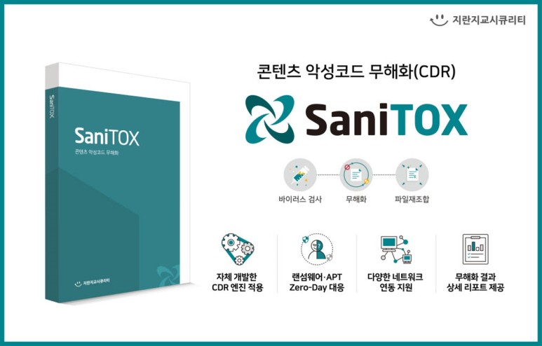 이미 알려진 악성코드를 포함한 문서는 시그니쳐 기반의 안티바이러스 등을 통해 탐지될 수 있지만, 알려지지 않은 혹은 변형된 위협 요소를 통한 Zero-Day APT 공격에 대해서는 안티바이러스는 대응할 수 없습니다. 하지만 새니톡스의 CDR 기술은 위협적인 액티브콘텐츠를 제거하고 재조립하는 과정을 통해 안티바이러스가 놓친 위협적인 파일에 의한 Zero-Day APT 공격에 대해서 선제적으로 대응할 수 있습니다.
