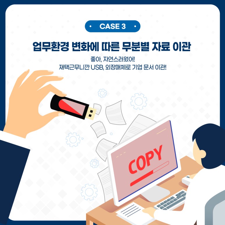 코로나19는 우리의 일상을 너무나 많이 바꿔 놓았습니다. 재택근무 전환 기업이 늘어가는 추세 속에 기업의 문서자산의 안전은 갈수록 위협을 받고 있는데요. 전세계가 동시에 처음 겪는 이 사태에 마땅한 규정과 환경구축없이 재택근무가 시작되고 말았습니다. 처음에 업무를 집에서 수행해야 하니 우선 임시적으로 중요 문서들만 먼저 USB니 외장하드니 매체에 마구 담아서 집에 가져왔을 겁니다. 아셨나요? 이 행위가 오히려 재택근무를 권장하는 회사에서 자료 유출을 방임한 것이었다는 사실.