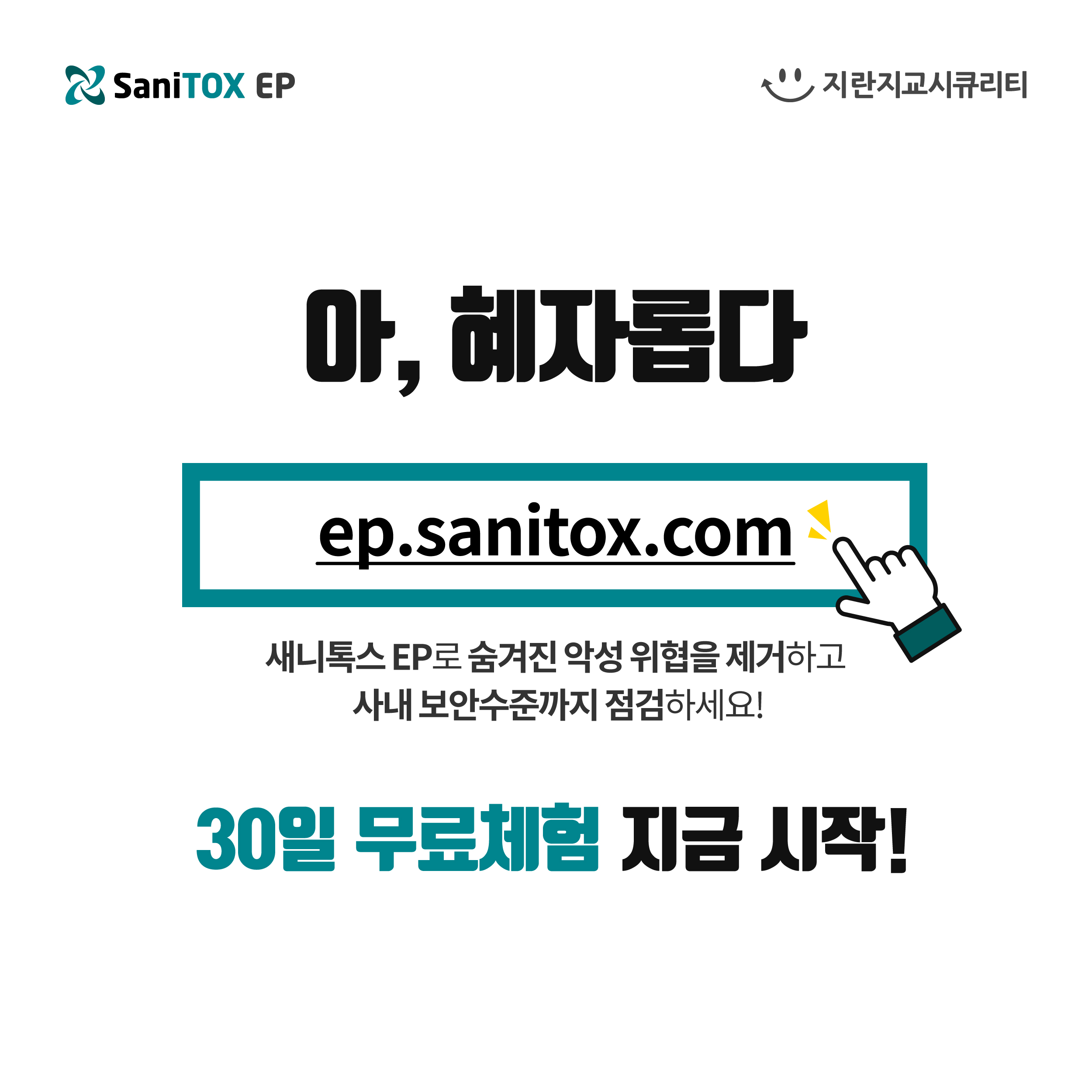 악성 이메일 모의 훈련은 악성 이메일과 동일한 포맷을(안전하지만, 페이크로다가) 훈련 대상자에게 발송해서 우리 직원 중에 누가 보안인식과 교육이 필요한지 알 수 있도록 모의 훈련하는 서비스예요. 1차와 2차 훈련 결과를 비교해서 걸리는 사람이 또 걸렸으면, 지못미… 계속 훈련해 나가면서 보안에 대한 경각심과 평소의 보안 인식을 바꾸는 교육하는 것이 가장 중요해요! 사실 많은 보안 솔루션들이 넘쳐나는 세상이지만, 가장 중요한 보안해결책은 ‘사람’이예요. 사람을 대상으로 보안인식을 개선해 나가는 서비스를 바로 새니톡스 EP 론칭 기념으로 제공해요! 자 30개 기업 선착순이니 얼른 신청하세요!!
