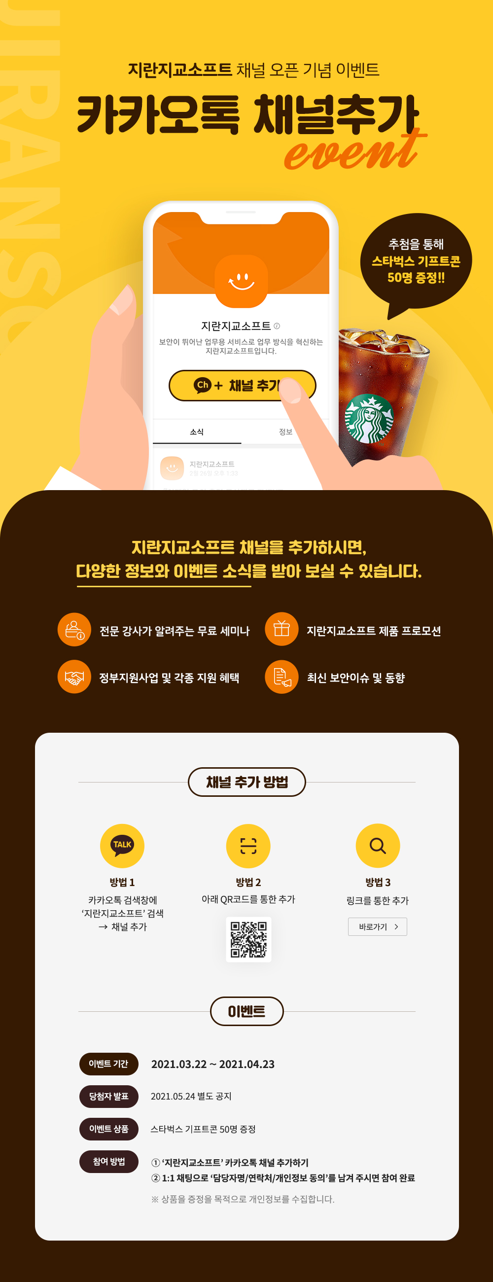 지란지교소프트, 고객 접점 확대 위해 카카오톡 채널 오픈 및 1개월 프로모션 진행