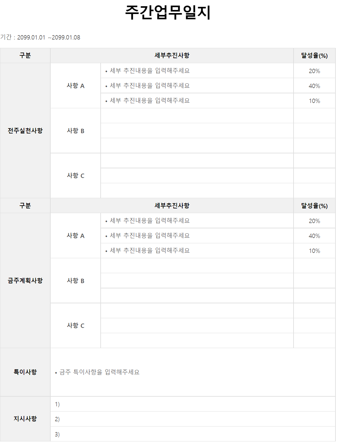 위 주간업무일지는 관리팀 박부장님이 오피스노트를 처음 접하자마자 10분만에 작성하신 주간업무일지 양식 (템플릿) 입니다. 참고로 박부장님은 A제조업에 올해로 25년 근속중이신데요. 연령과 직책에 관계없이 쉽게 사용할 수 있는 오피스노트의 사용성을 단편적으로 보여주는 사례입니다 :-)