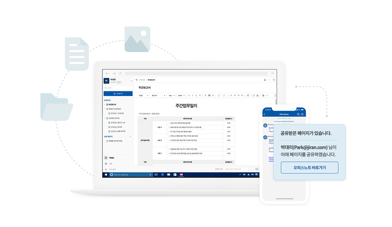 | 3. 오피스메신저와의 연동으로 PC는 물론 모바일로도 문서 진행상황 파악 및 실시간 공유가 가능한 오피스노트 |