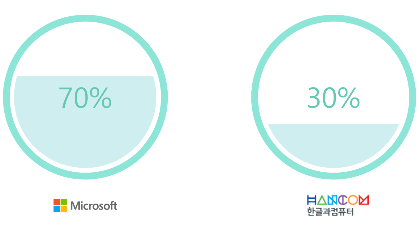 작년인 2020년 3월 통계에 따르면 현재 국내 시장은 MS오피스365가 약 70%의 점유율을, 한컴오피스가 약 30%의 점유율로 경쟁하고 있다고 발표된 결과가 있습니다. 이는 기업에서 문서를 작성하는데 있어 아직도 MS오피스365 사용률이 매우 높다는 것을 의미하죠.