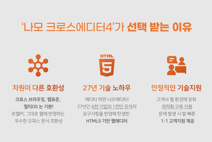 고객사가 나모 크로스에디터4를 선택한 이유는 아래와 같습니다.