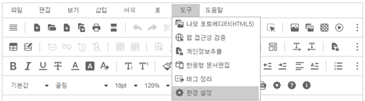 | 모바일 에디팅, 반응형 웹환경 지원(Android, iOS, 내장 브라우저) | 웹 접근성 준수 및 설정 기능 제공 |