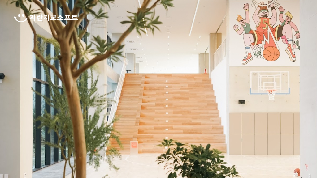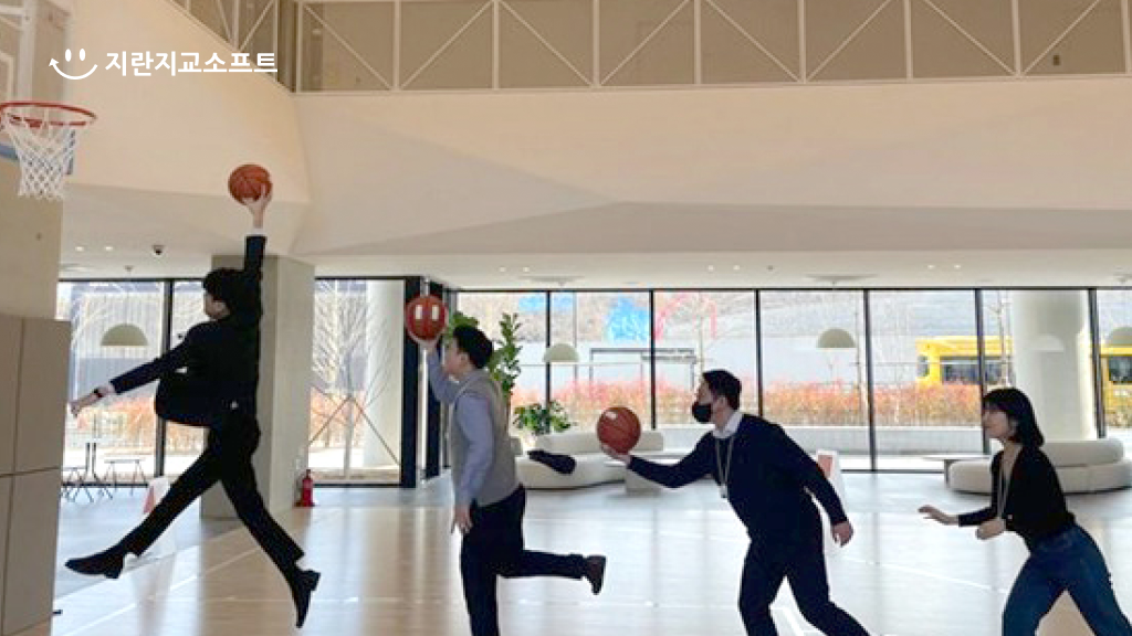 추후에 1층 농구코트에서 모든 계열사가 즐길 수 있는 지란 웰컴파티를 계획하고 계시더라고요~~