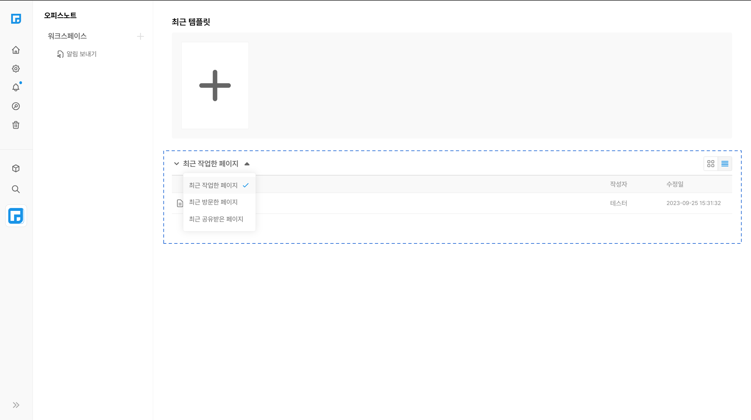 하지만 오피스노트를 사용하고 부터는 이런 고민들을 안하게 되었습니다! 왜냐하면 오피스노트에서는 '대시보드' 기능을 이용하여 최근 방문하거나 공유 받은, 그리고 작업하고 있던 페이지와 공간에 쉽게 접근할 수 있기 때문입니다!