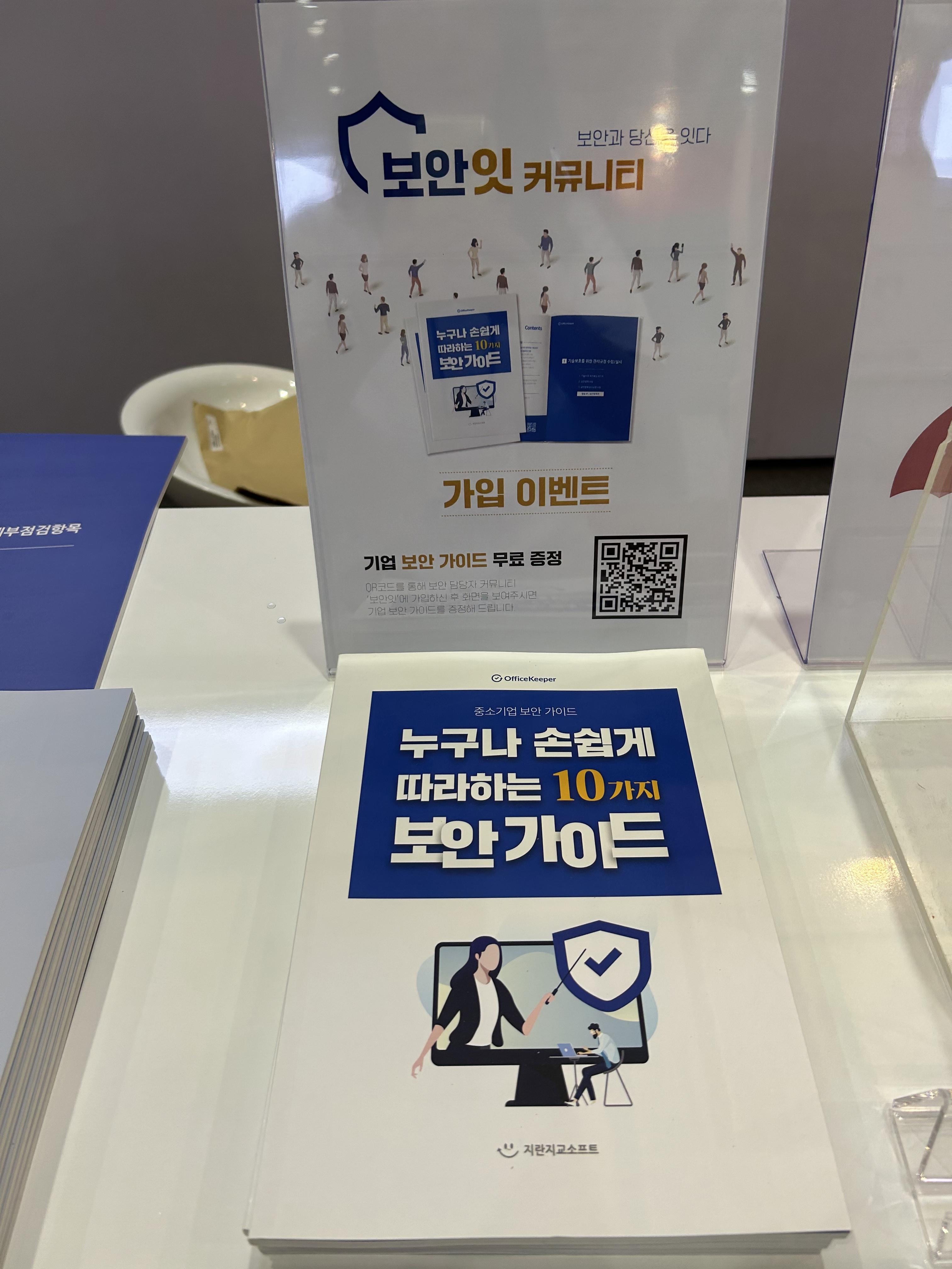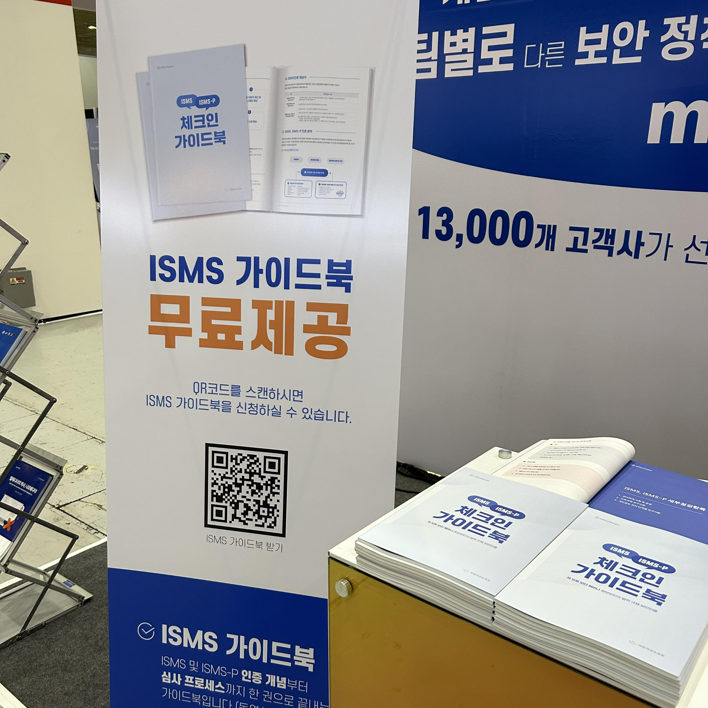 보안 업계는 ISMS 인증을 받기 위해서 많은 노력을 기울이고 있습니다. 조금이나마 실무자분들께 도움이 될 수 있도록 저희가 직접 제작한 ISMS/ISMS-P 가이드북을 배부하는 이벤트도 진행했습니다. 가이드북에는 ISMS 및 ISMS-P 인증 개념부터 심사 과정까지 한 권으로 살펴볼 수 있도록 되어있고, OR코드와 함께 동영상 강의도 수록되어 있습니다.
