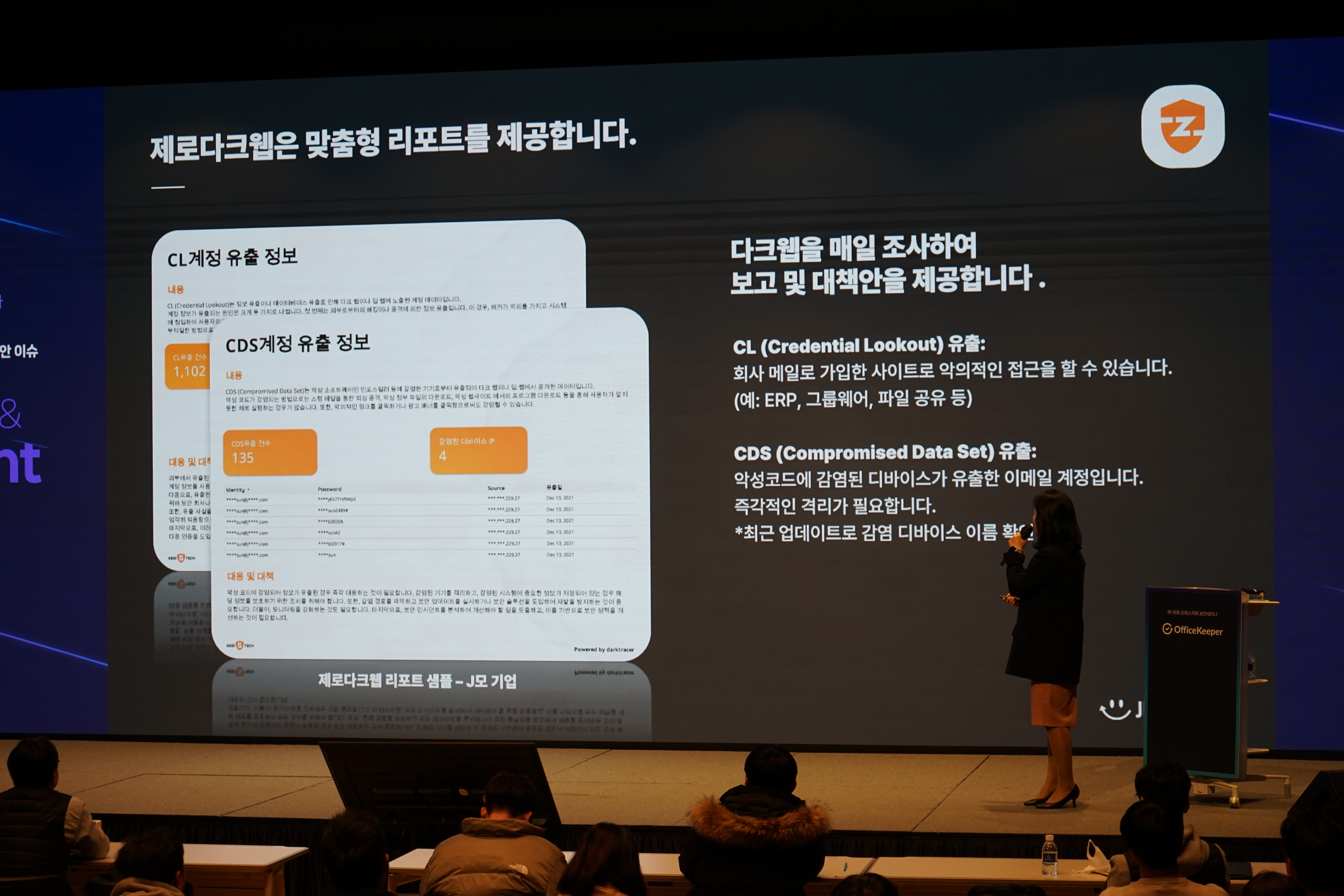 강의와 함께 보안 솔루션을 소개하는 시간도 가졌는데요. 이번 세미나에서는 지란지교소프트와 지란지교시큐리티의 대표 제품 오피스키퍼와 클라우드 메일게이트 그리고 제로다크웹을 소개했습니다.😊👏
