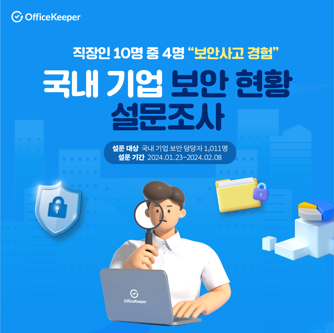 지란지교소프트에서 '2024 국내 기업 보안 현황 설문조사'를 진행했습니다. 2024년 1월 23일부터 2월 8일까지 진행된 설문조사는 총 1,011명이 참여해 주셨습니다. 이번 글에서는 설문조사에서 도출된 보안 이슈 및 인사이트를 함께 살펴보도록 하겠습니다!