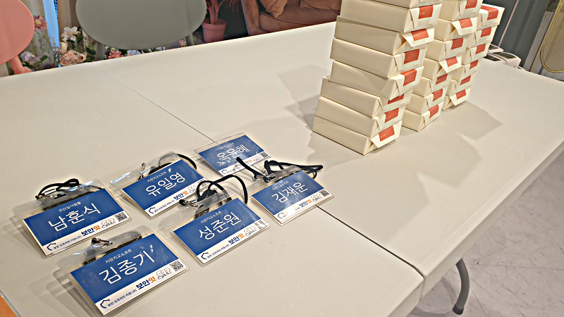 이번 2회차 모임에는 전산 담당자 분들이 더 편안하게 네트워킹 할 수 있도록 이름표를 만들어 나눠드리고 모임 중간 중간 주 업무를 소개하고 명함 교환하는 시간을 가졌습니다. 그리고 참석하신 분들을 위한 작은 선물을 드리고 중간 중간 필요한 식사(샌드위치, 커피, 치킨, 맥주)를 제공했어요.
