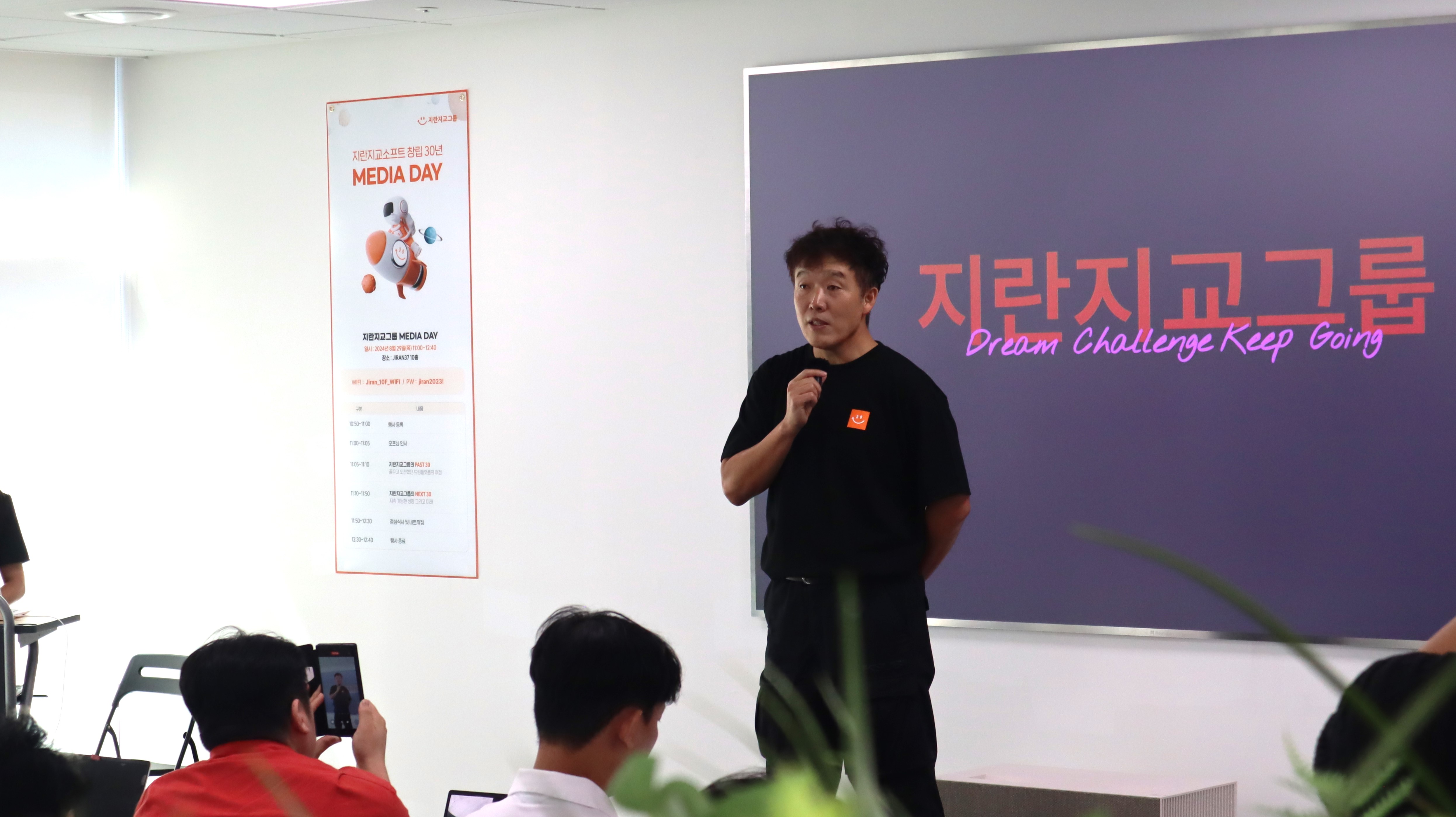 미디어데이는 지란지교 그룹의 창업주이신 오치영 CDO님의 환영사로 시작되었습니다.