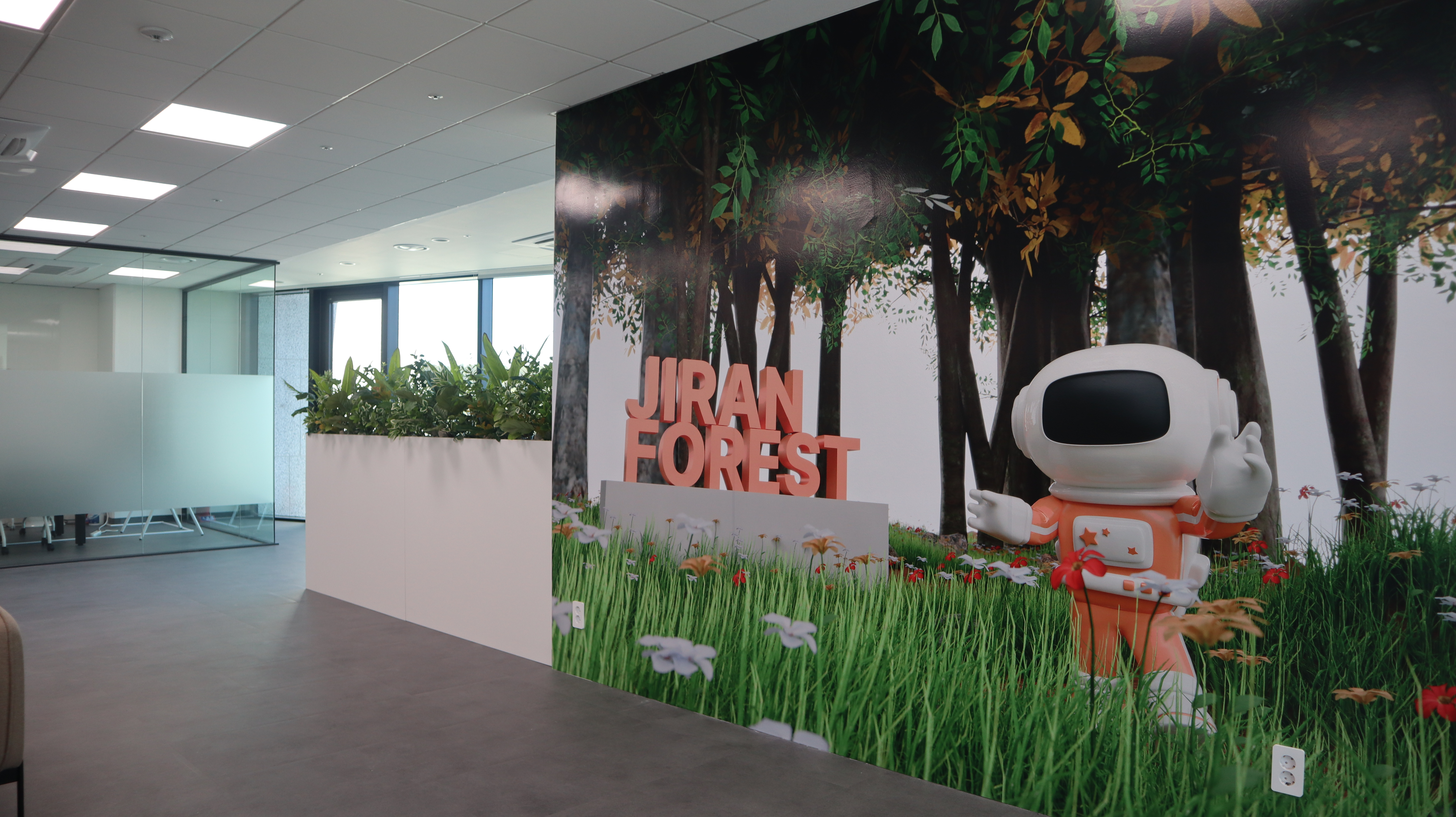 위 사진은 10층 라운지 한 벽면에 자리한 지란 포레스트 벽이에요!'드림플랫폼에서 지란포레스트로 나아가자'는 저희의 'NEXT 30' 포부를 담은 공간이랍니다. 이 곳에서 저희의 새로운 비전을 함께 나누며 더욱 뜻깊은 시간을 가질 수 있었어요.