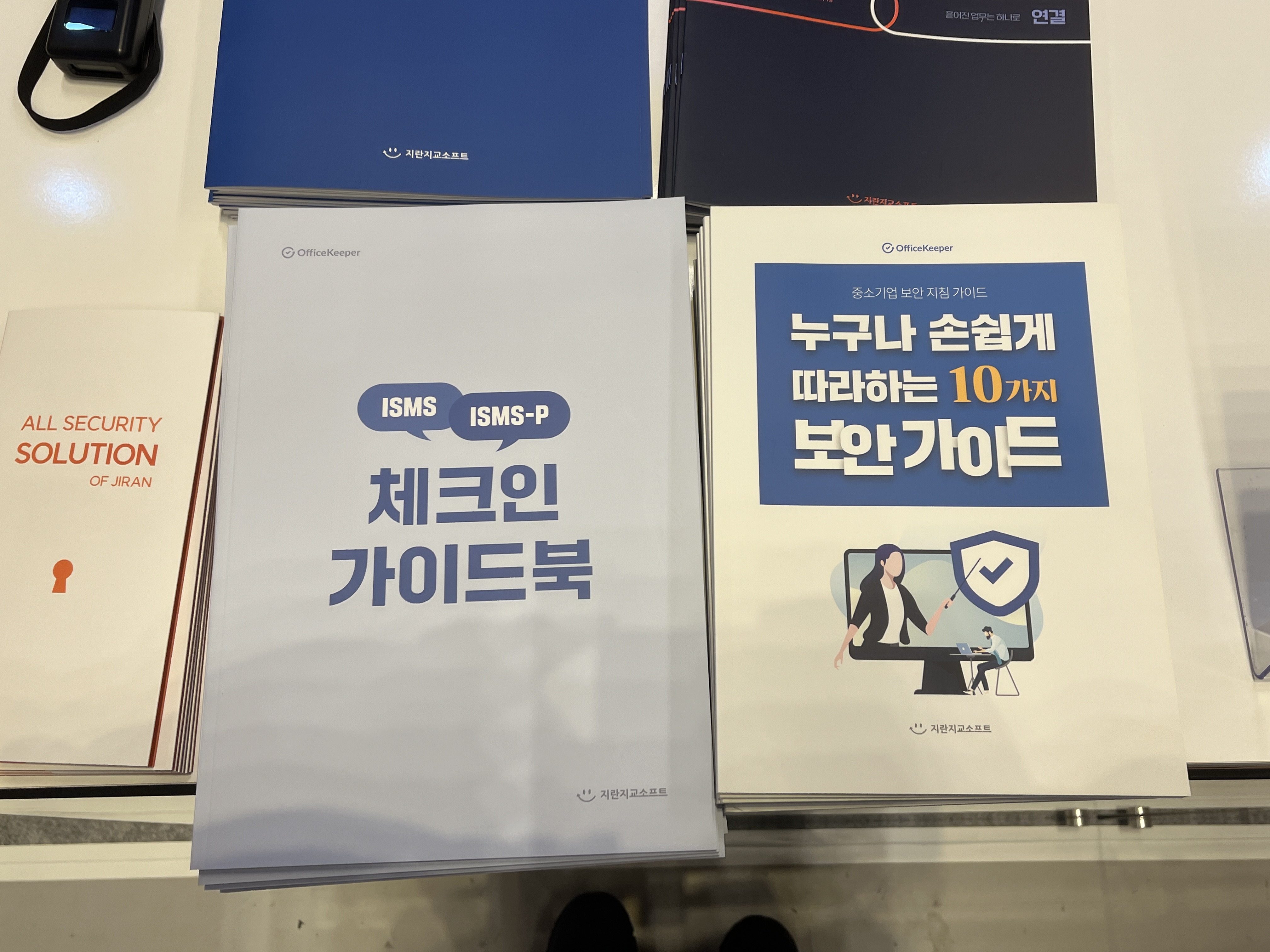 부스 방문하신 분들께 ISMS/ISMS-P 인증 가이드북기업 보안 지침 가이드북을 증정해드렸습니다! ISMS/ISMS-P 인증은 최근 많은 보안 담당자분들이 관심을 가지고 계신 만큼 정말 많은 분들이 책을 받아가셨답니다.