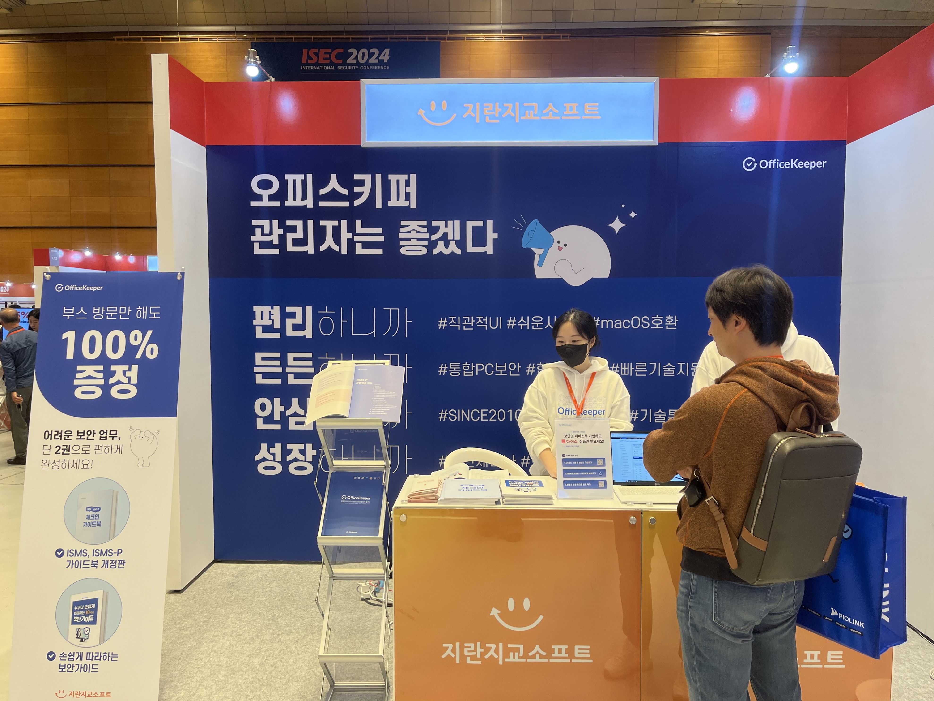 지난 10월 16일(수)부터 17일(목)까지 서울 코엑스에서 열린 제18회 국제 시큐리티 콘퍼런스 ‘ISEC 2024’에 지란지교소프트가 대표 보안 솔루션 오피스키퍼로 참가했습니다.