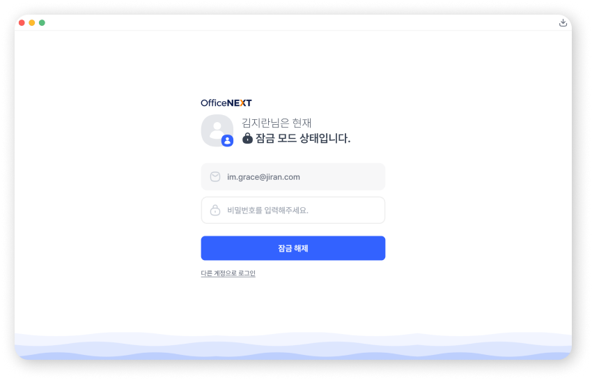 오랫동안 자리를 비우거나 부재중일 때, 잠금모드를 활용해 보안을 강화하세요. 좌측 상단 '내 프로필'을 클릭해 잠금 모드를 수동으로 설정하거나, '자리 비움' 또는 '자동 로그인' 시 잠금 모드를 설정할 수 있습니다.