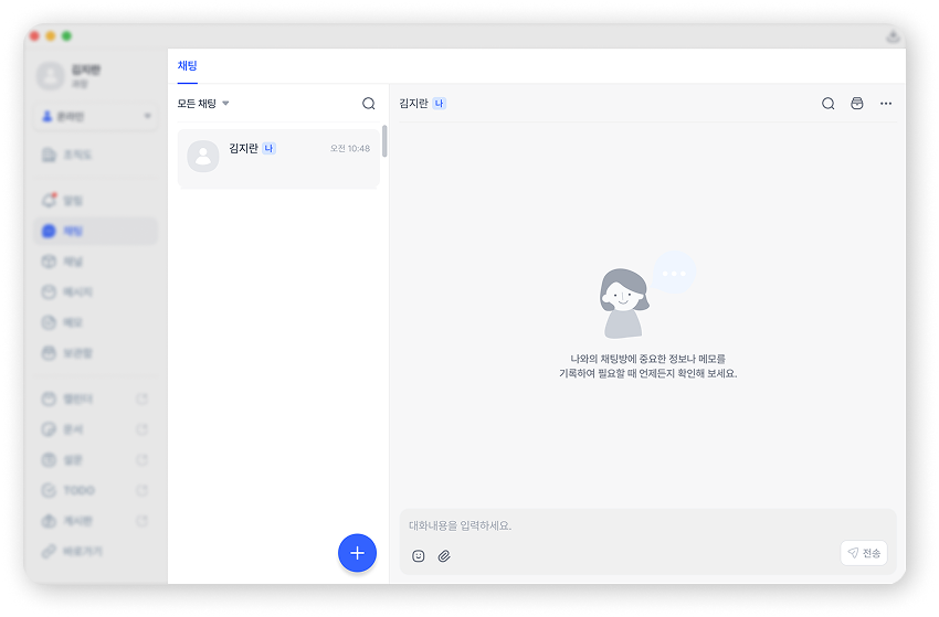 '나와의 채팅'이 가능해졌어요. 급하게 메모가 필요한 사항이나 테스트해볼 사항, 중요한 메모는 이제 나와의 채팅방에 기록해 보세요.