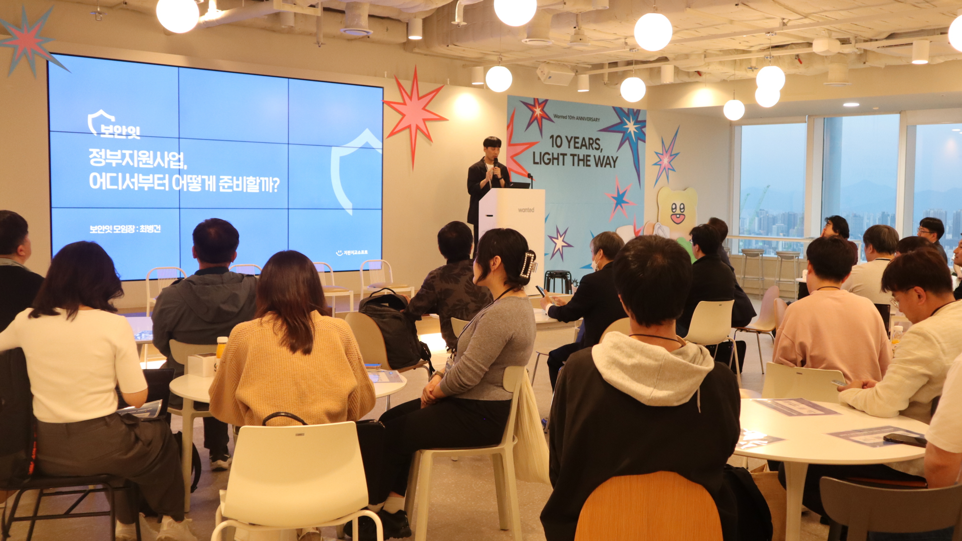 이번 보안잇 X 보안 밋업은 지란지교소프트와 원티드랩이 함께했던 만큼 특별히 2개의 세션으로 구성되었는데요. 보안잇에서 준비한 첫번째 세션은 바로 '정부지원사업, 어떻게 준비할까?'였습니다.