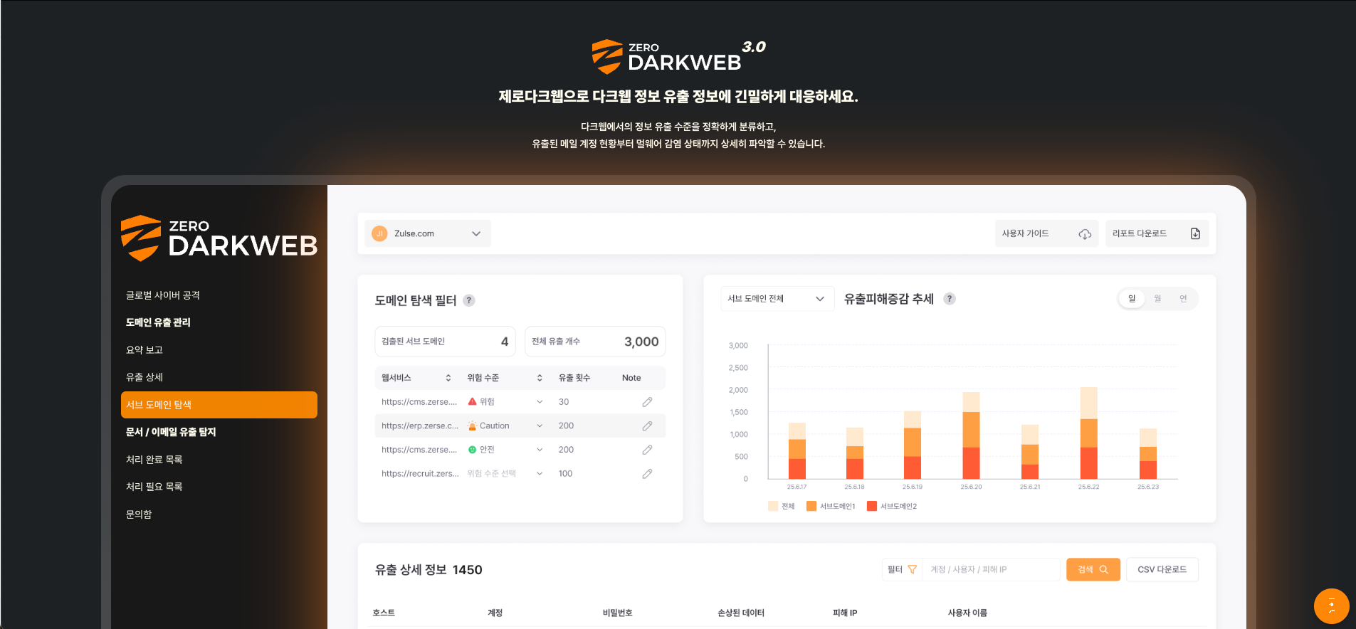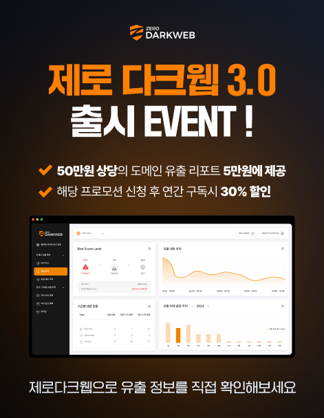 제로다크웹3.0 출시 프로모션! 제로다크웹으로 다크웹 유출 정보를 직접 확인하고 대응하세요!