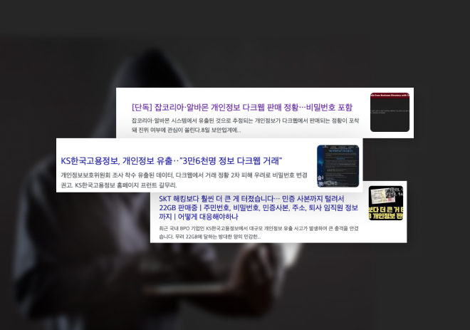 최근 언론 보도에서 고객 개인정보가 다크웹에 판매되고 있다는 기사가 심심치 않게 등장합니다.