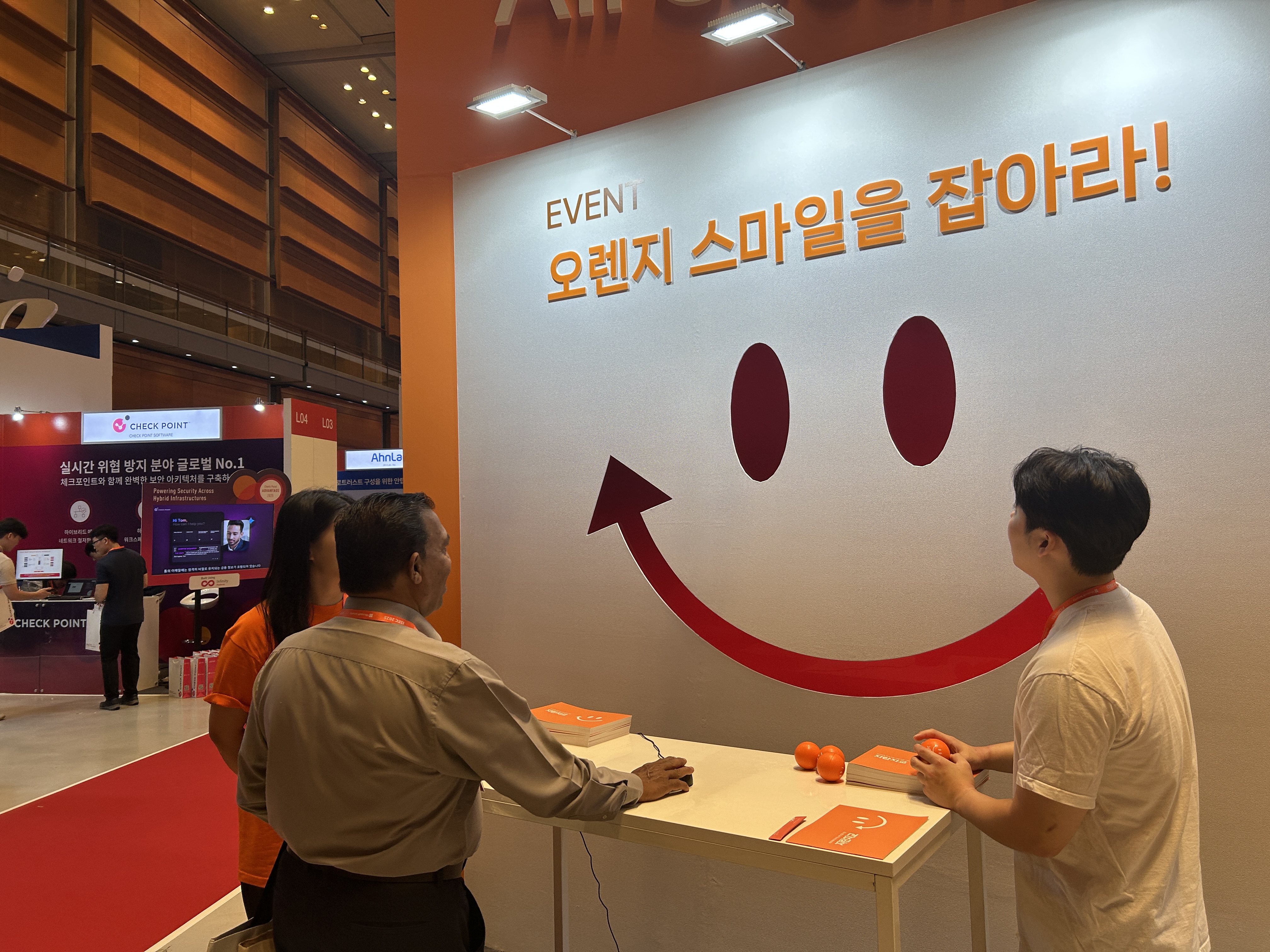 이번 ISEC 2025에서는 부스를 찾은 참관객분들이 가장 많이 즐겨주신 코너는 바로 "오렌지 스마일을 잡아라!" 였습니다🧡