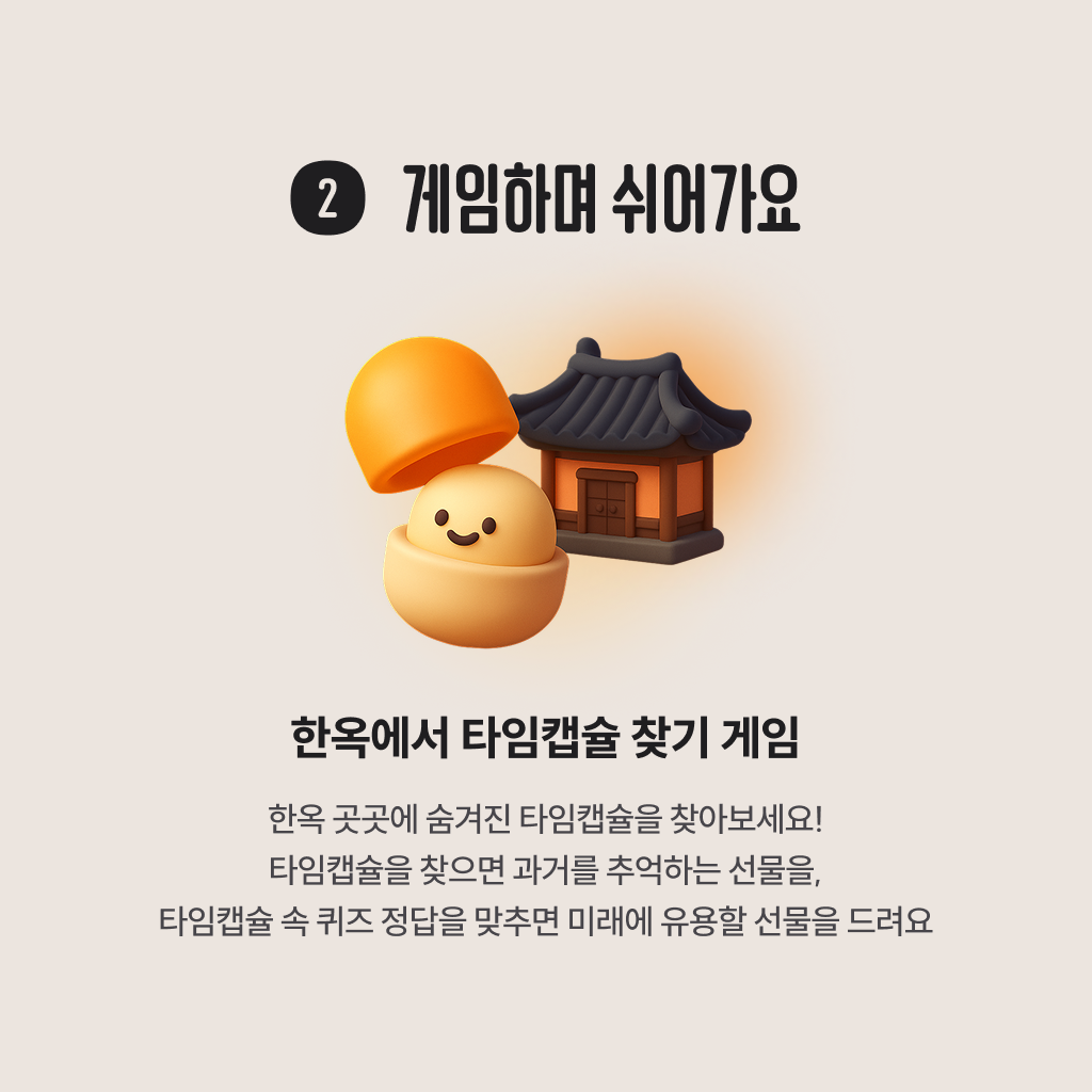 공식 강연이 끝난 뒤에는 웃음이 끊이지 않았던 타임캡슐 찾기 & 깜짝 퀴즈 이벤트가 이어졌습니다. 한옥 곳곳에 숨겨둔 타임캡슐 속에는 카세트테이프, 플로피디스크 등 추억을 불러일으키는 레트로 키링과 함께 퀴즈가 숨어 있었는데요. 타임캡슐을 찾은 분께는 정답을 맞힐 우선권이 주어졌습니다.