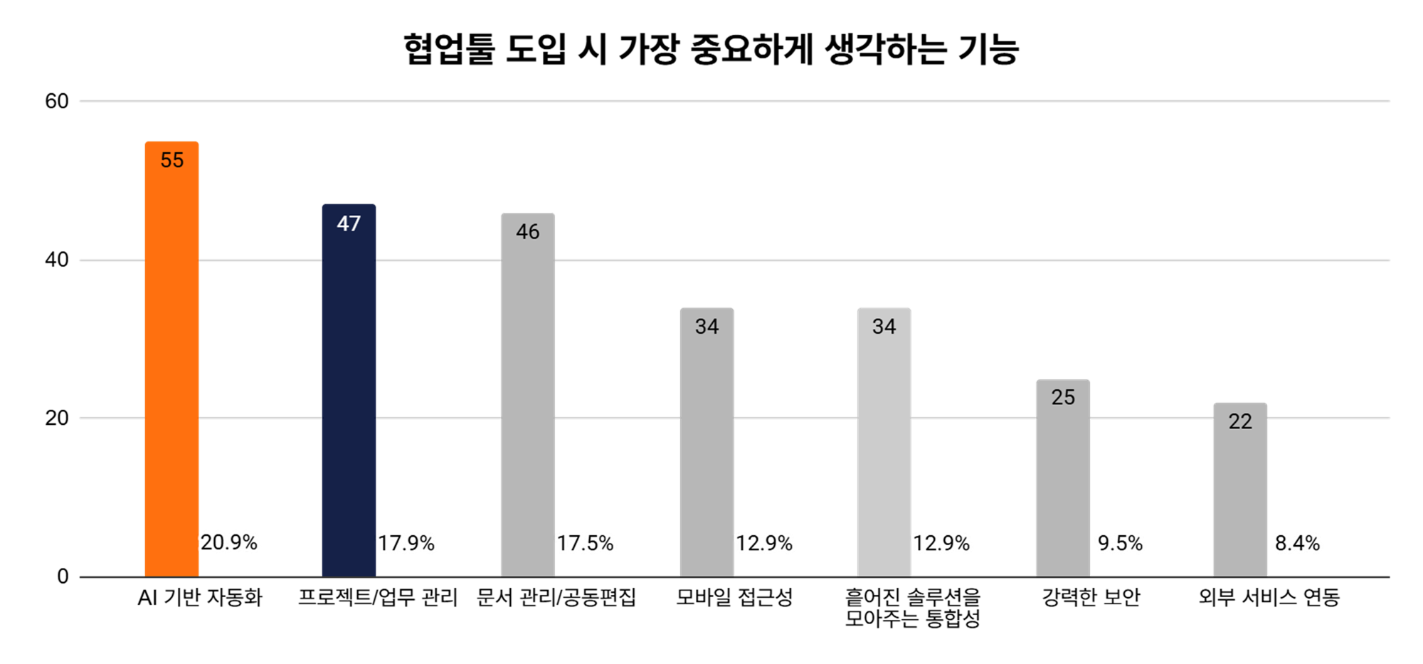 - 공동 4위: 모바일 접근성 (12.9%) / 흩어진 솔루션을 모아주는 통합성 (12.9%)
