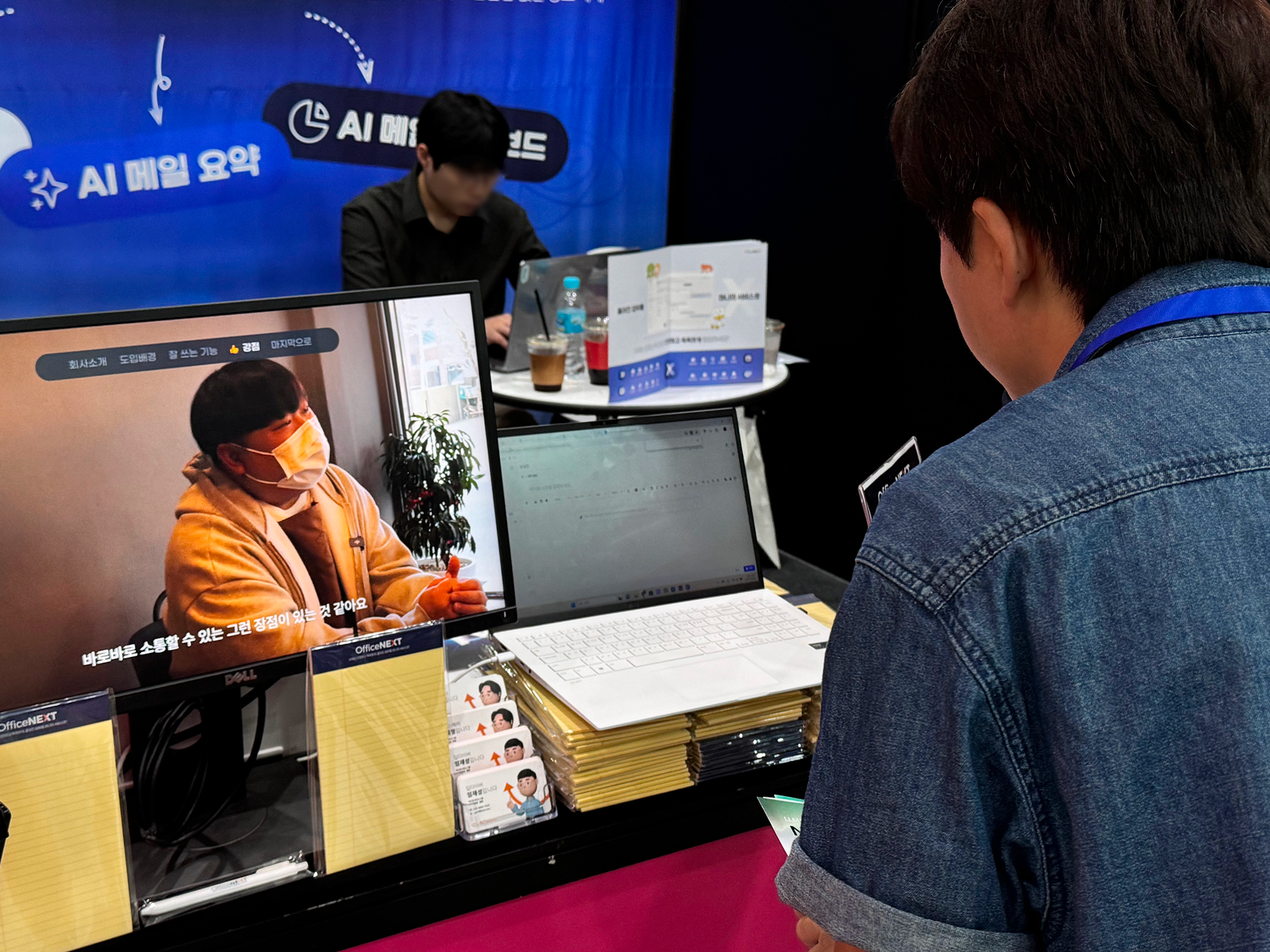 AI Festa 2025 오피스넥스트 부스에서 협업툴을 체험하는 모습
