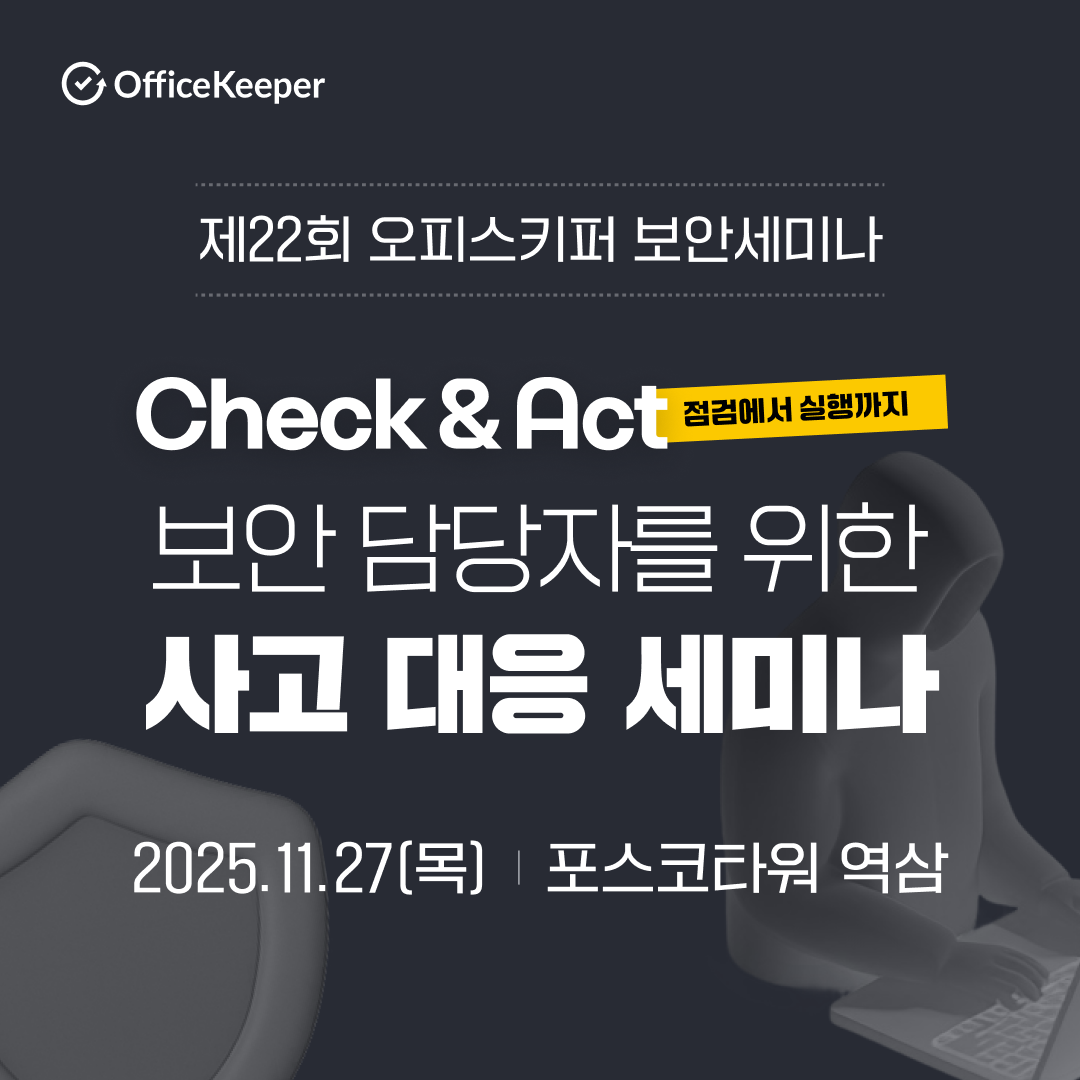 | [보안세미나] 오피스키퍼 제22회 보안세미나 '보안담당자를 위한 사고 대응 세미나' 현장 스케치 (0) | 2025.12.02 |
