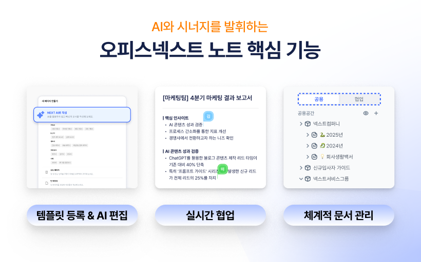 | AI와 시너지를 발휘하는 오피스넥스트 노트 핵심 기능