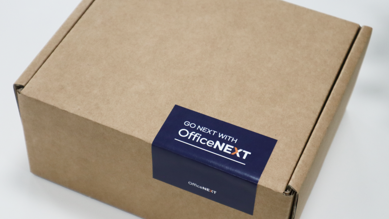 우선, 웰컴키트 박스 겉면에는 이번 웰컴키트를 통해 오피스넥스트가 고객 분들께 전하고 싶은 메시지를 직접적으로 표현했어요. '오피스넥스트와 함께 다음으로 나아가자'는 의미의 'GO NEXT WITH OFFICENEXT'라는 슬로건이 담긴 스티커를 부착했습니다. 오피스넥스트와 함께 고객 분들이 더 높이 성장하고, 더 큰 미래를 그려갈 수 있길 바라는 마음을 담았어요.